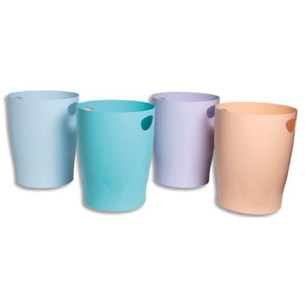 EXACOMPTA Corbeille papier ECO AQUAREL 15L Dim (ØxH):26×33,5cm. Assortis pastel : Bleu Corail Mauve Vert