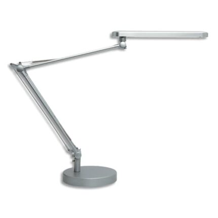 UNILUX Lampes à LED MamboLED Grise en ABS et alu – Bras 2 x 32 cm, Tête 28,5 x 4,5 cm Socle D16 x H2,5 cm