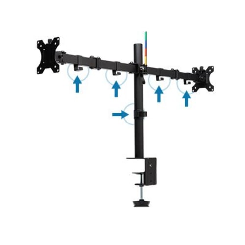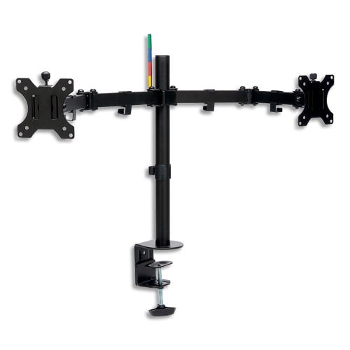 Le double bras pour écrans est doté du système SmartFit qui consiste à trouver le bon réglage pour vos outils grâce à la taille de votre main et un système de couleurs, il existe 4 réglages différents. Un gain de place est acquis puisque la place de vos deux écrans est libre sur votre bureau.