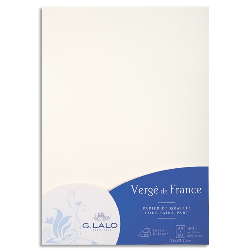 LALO Etui de 50 feuilles 160g LALO vergé 21×29,7cm. Coloris Blanc