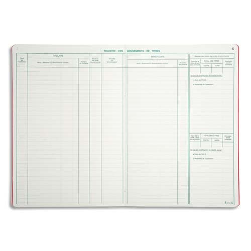 LE DAUPHIN Piqûre registre des mouvements de titres 29,7 x 21 cm vertical 40 pages 5 colonnes