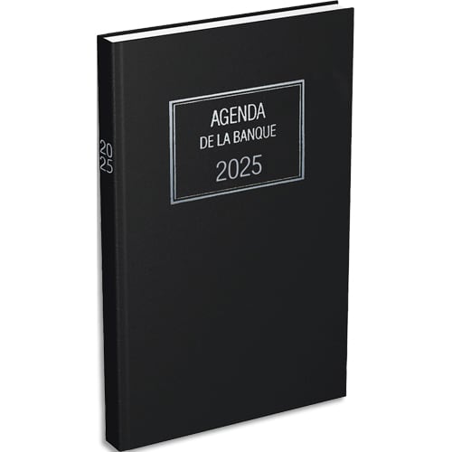 LECAS Agenda banquier large, Janvier à Décembre, 1 volume, 1 jour sur 2 pages, 18x29cm Noir