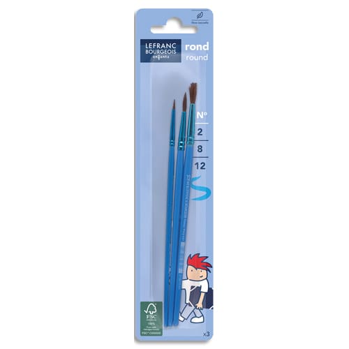 LEFRANC BOURGEOIS Blister de 3 pinceaux Poil de Poney n° 2 + n°8 + n°12