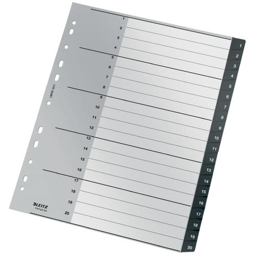 LEITZ Intercalaires 20 onglets numériques Leitz Recycle, A4 XL, plastique 90% recyclé/100% recyclable