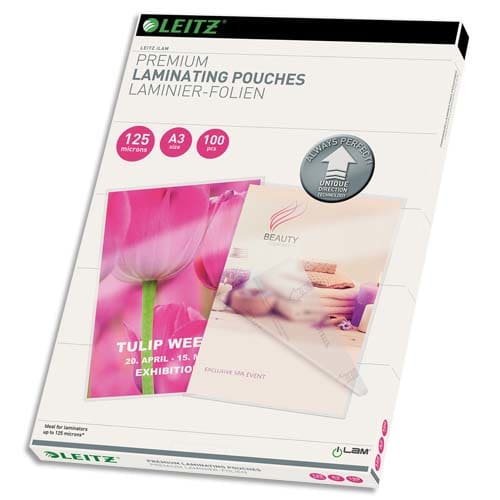 LEITZ Pochettes de plastification, 125 microns par face, format A3, boîte de 100, brillant, 74880000