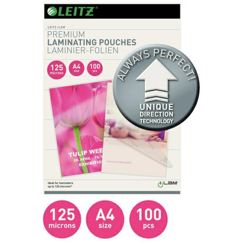 LEITZ Pochettes de plastification, 125 microns par face, format A4, boîte de 100, brillant, 74810000