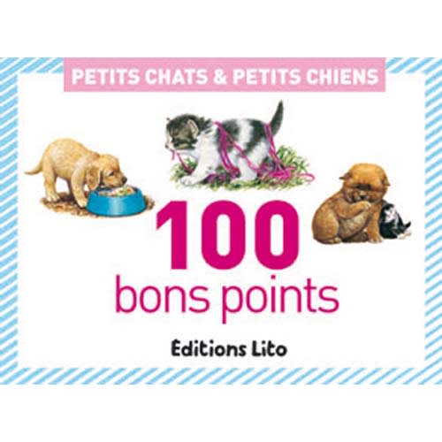 LITO DIFFUSION Boîte de 100 bons points chats chiens, 20 images par 5 ex avec texte documentaire au dos