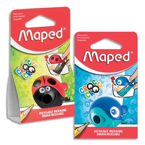 MAPED Blister taille-crayons CROC CROC EASY 1 usage avec pince. Design coccinelle ou baleine
