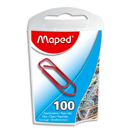 MAPED Boîte de 100 trombones en acier laqué 25 mm coloris assortis