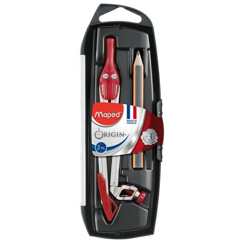 MAPED Compas ORIGIN avec protège pointe de sécurité à bague, assortis Bleu ou Rouge
