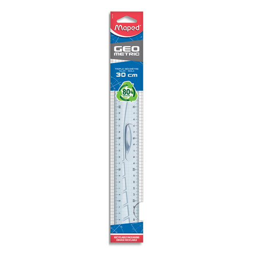 MAPED Geometric – Règle (triple décimètre) 30 cm – transparente
