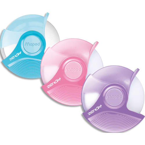 MAPED Gomme ZENOA PLUS avec étui de protection rotatif. Coloris assortis pastel aléatoire