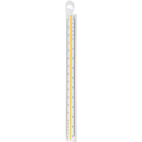 Echelles triangulaires de réduction. Double numérotation sur la graduation. Deux gorges de couleur. Graduation 30 cm.