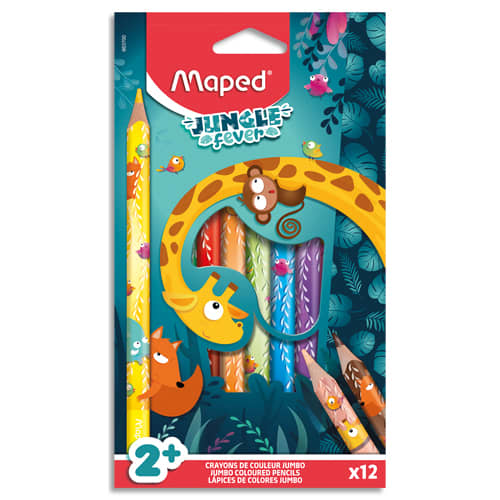 MAPED Pochette de 12 crayons de couleur Jungle Fever. Formart jumbo. 35% de matériaux recyclé