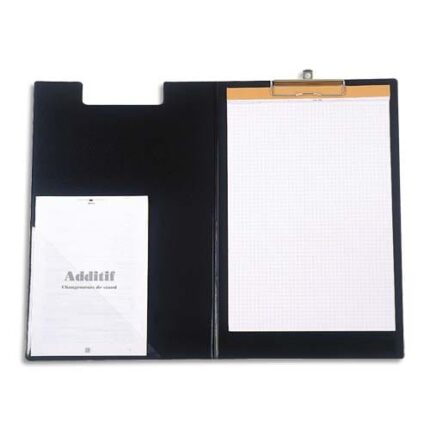 MAUL Porte-bloc à rabat A4 en PVC avec pince métal. Pochette intérieure/porte-stylo. Coloris noir