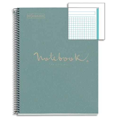 MIQUELRIUS Cahier carte spirale ECO EMOTION 21×29,7cm 160 pages 80g 5×5. Coloris bleu