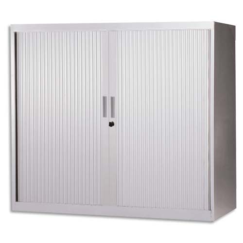 MT INTERNATIONAL Armoire basse métal monobloc Corps et Rideaux Gris clair 2 tablettes – Dim. 120x105x43cm