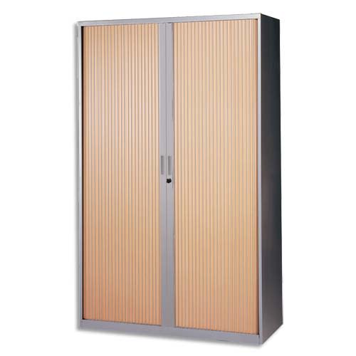 MT INTERNATIONAL Armoire haute métal monobloc Corps silver/Rideaux hêtre 4 tablettes – Dim. 120x198x43 cm
