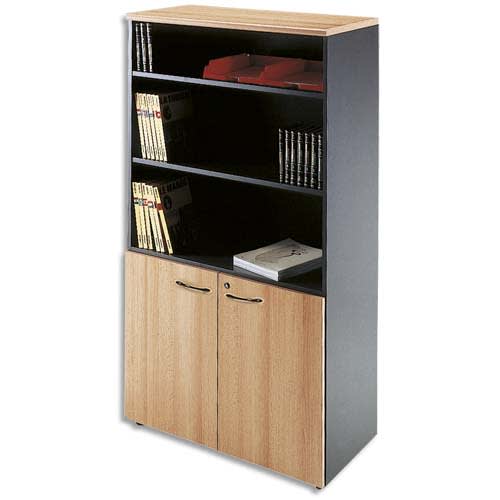 MT INTERNATIONAL Bibliothèque haute demi-portes MT3 Confort, L91 x H182 x P43 cm Hêtre noir