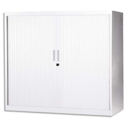 MT INTERNATIONAL Armoire basse métal monobloc Corps/Rideaux Blanc 2 tablettes Dim. L120 x H105 x P43 cm
