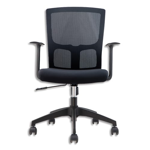 MT INTERNATIONAL Siège Campus dossier en résille, assise mousse recouvert de tissu noir. Accoudoirs fixes