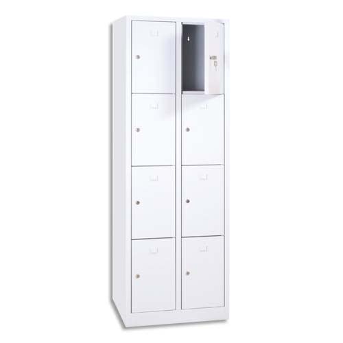 MT INTERNATIONAL Vestiaire 4 Cases 2 Colonnes en acier Blanc, L60 x H180 x P50 cm, case L22 x H40 x P47,5