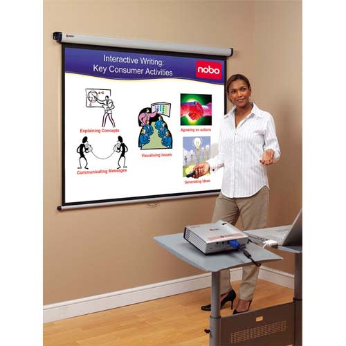 - La surface blanc mat lumineuse de cet écran fournit une image nette et détaillée, facilement visible par toute une salle