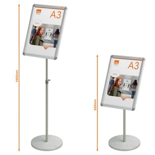 NOBO Présentoir sur pied pour porte-affiche clipsable, aluminium, A3