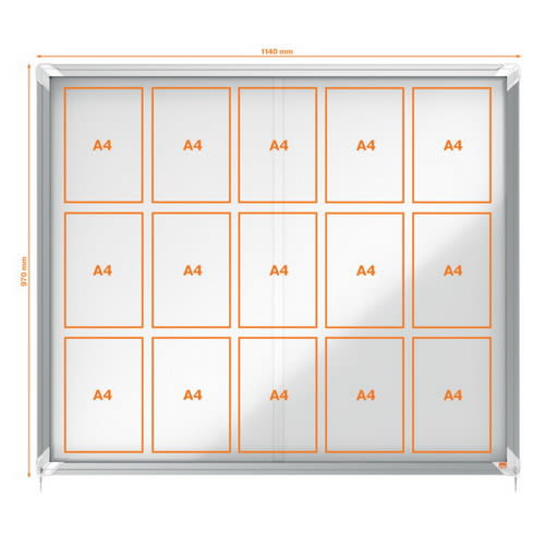 NOBO Vitrine d’affichage magnétique porte coulissante Premium Plus, fermeture à clé, capacité 15 flles,A4