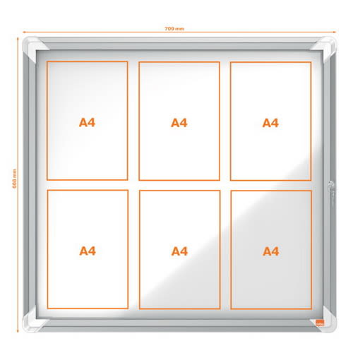 NOBO Vitrine d’affichage magnétique Premium Plus, fermeture à clé, capacité 6 feuilles, A4