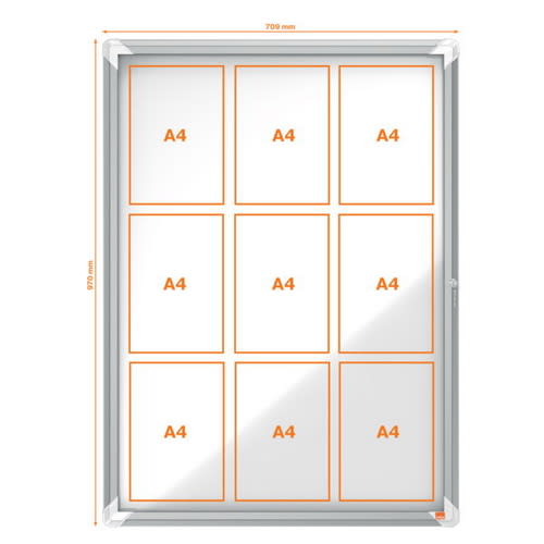 NOBO Vitrine d’affichage magnétique Premium Plus, fermeture à clé, capacité 9 feuilles, A4