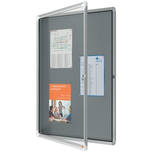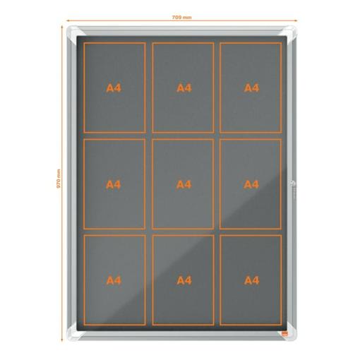NOBO Vitrine d’affichage porte battante Premium Plus – feutre gris – 9 x A4 – 1915330