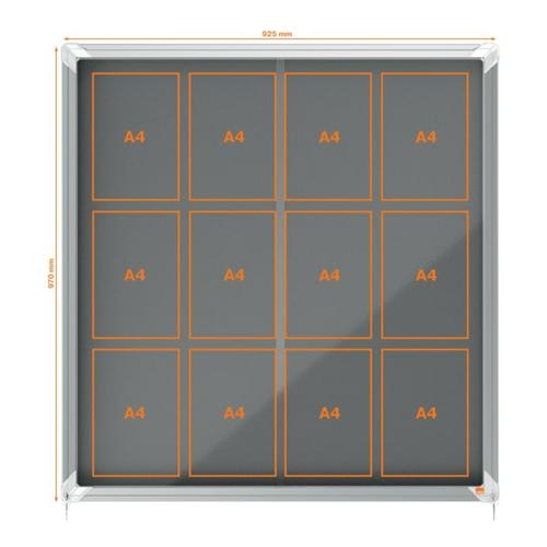 NOBO Vitrine d’affichage porte coulissante Premium Plus – feutre gris – 12 x A4 – 1915337