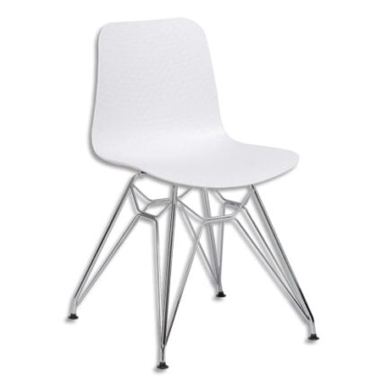 PAPERFLOW Lot de 2 chaises UXSTEEL en polypropylène, pied chromé, assise blanche, H79xL49,5xP50,5 cm