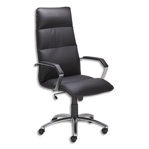Fauteuil Jupiter imitation cuir Noir, à mécanisme basculant centré, piètement chromé 5 branches