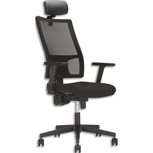 Fauteuil Enjoy en résille Noir avec têtière, à mécanisme synchrone, accoudoirs 3D réglables