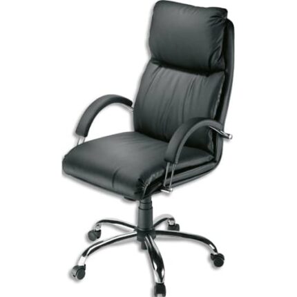 Fauteuil Nadir en croûte de cuir Noire, à mécanisme basculant centré, accoudoirs fixes fournis