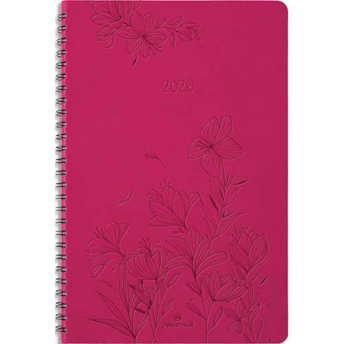 OBERTHUR Agenda PRIMROSE 27, spiralé, Janvier à Décembre, format 22x28cm Fuchsia