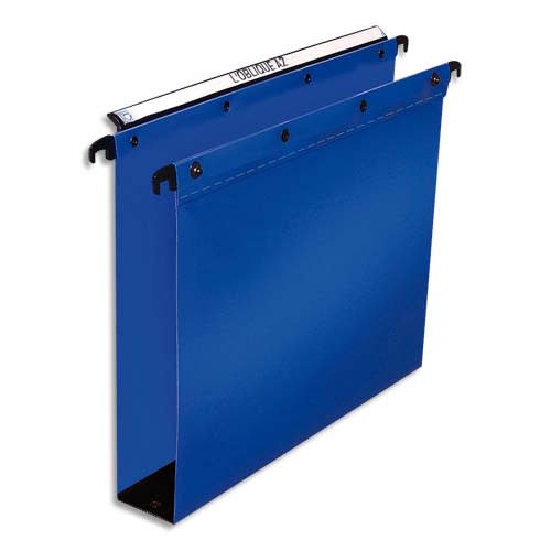 OBLIQUE AZ Paquet de 10 dossiers suspendus TIROIR en polypro opaque 5/10e. Fond 80, bouton-pression. Bleu