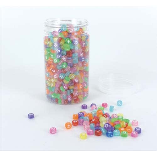 O’COLOR Bocal de 1200 perles alphabet transparentes couleurs assorties, diamètre 7 mm