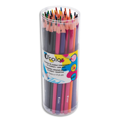 O’COLOR Pot de 48 crayons de couleur en résine triangulaire.Diamètre crayon 7mm, mine 2,7mm. Assortis