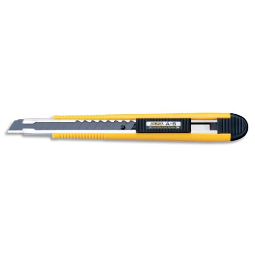 OLFA Cutter ambidextre A-5 Jaune Noir, verrouillage automatique, lame sécable – Largeur de la lame 9 mm