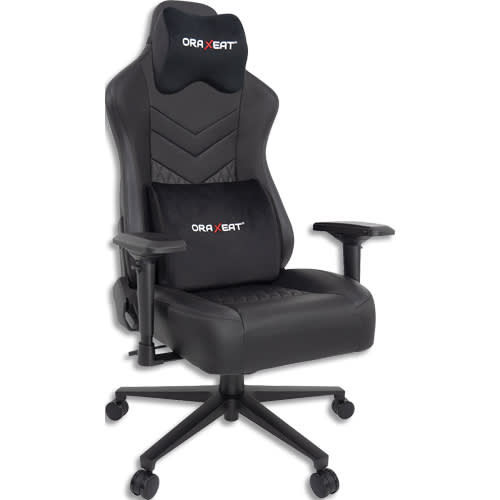 ORAXEAT Fauteuil gamer MX850 noir, base aluminium, assise 54x57cm, dossier 57x87cm, Poids maxi 150 kg
