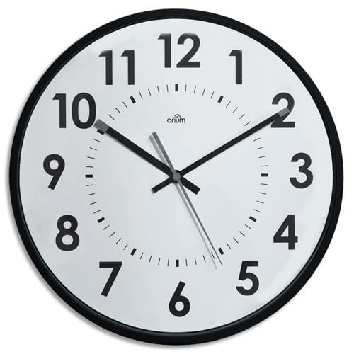 ORIUM Horloge silencieuse Ø 30 cm. Fonctionne avec 1 pile LR6/AA fournie. Fond Blanc, cadran noir