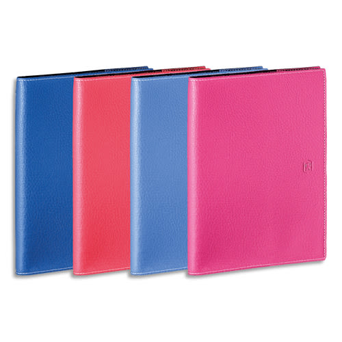 Spiralé, en toile enduite grain cuir au toucher bougie, 1 semaine/2 pages. Janvier à Décembre. 128 pages Reliure intégrale. Format : 15 x 21cm. Assortis.