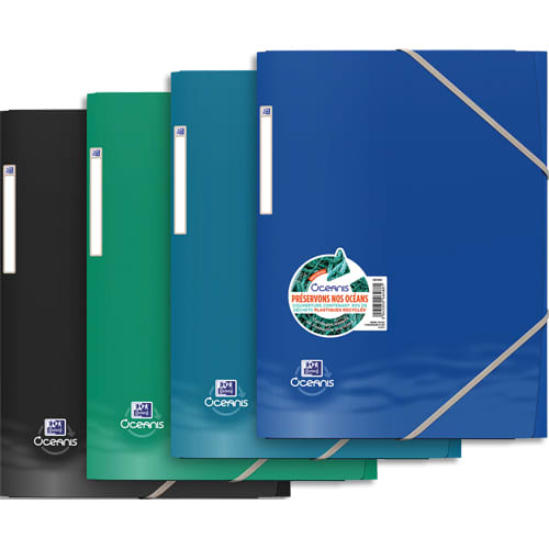 OXFORD Chemise 3 rabats à élastique OCEANIS RECYCLE en polypropylène 5/10e. Format A4. Coloris assortis
