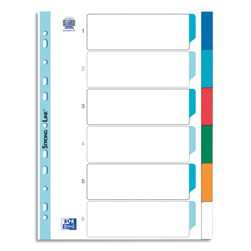 OXFORD Intercalaire en polypropylène 12/100e, 6 positions, format A4. Coloris assortis