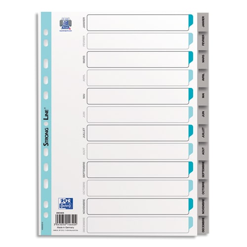 OXFORD Intercalaire mensuel 12 positions en polypropylène 12/100e. Format A4. Coloris gris