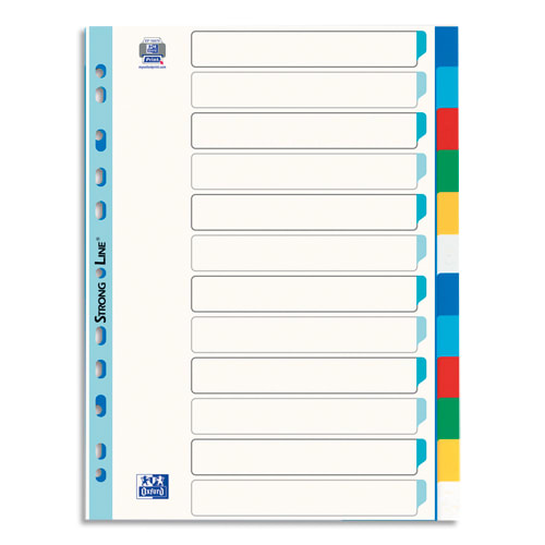 OXFORD Intercalaires en polypropylène 12/100e, 12 positions, format A4. Coloris assortis