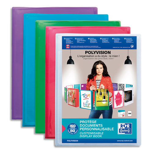 OXFORD Protège-documents personnalisable Polyvision 160 vues, 80 pochettes. En polypropylène. Assortis